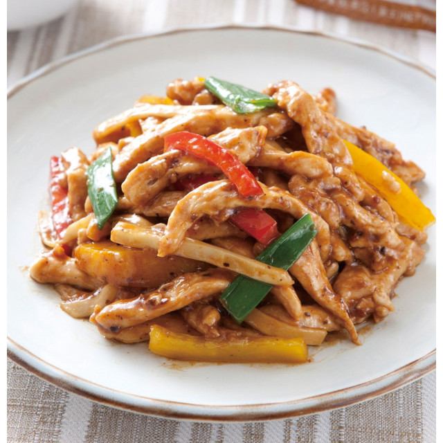 1.將黑胡椒雞柳(無須退冰)以隔水加熱10~15分鐘即可剪開耐熱袋到出。